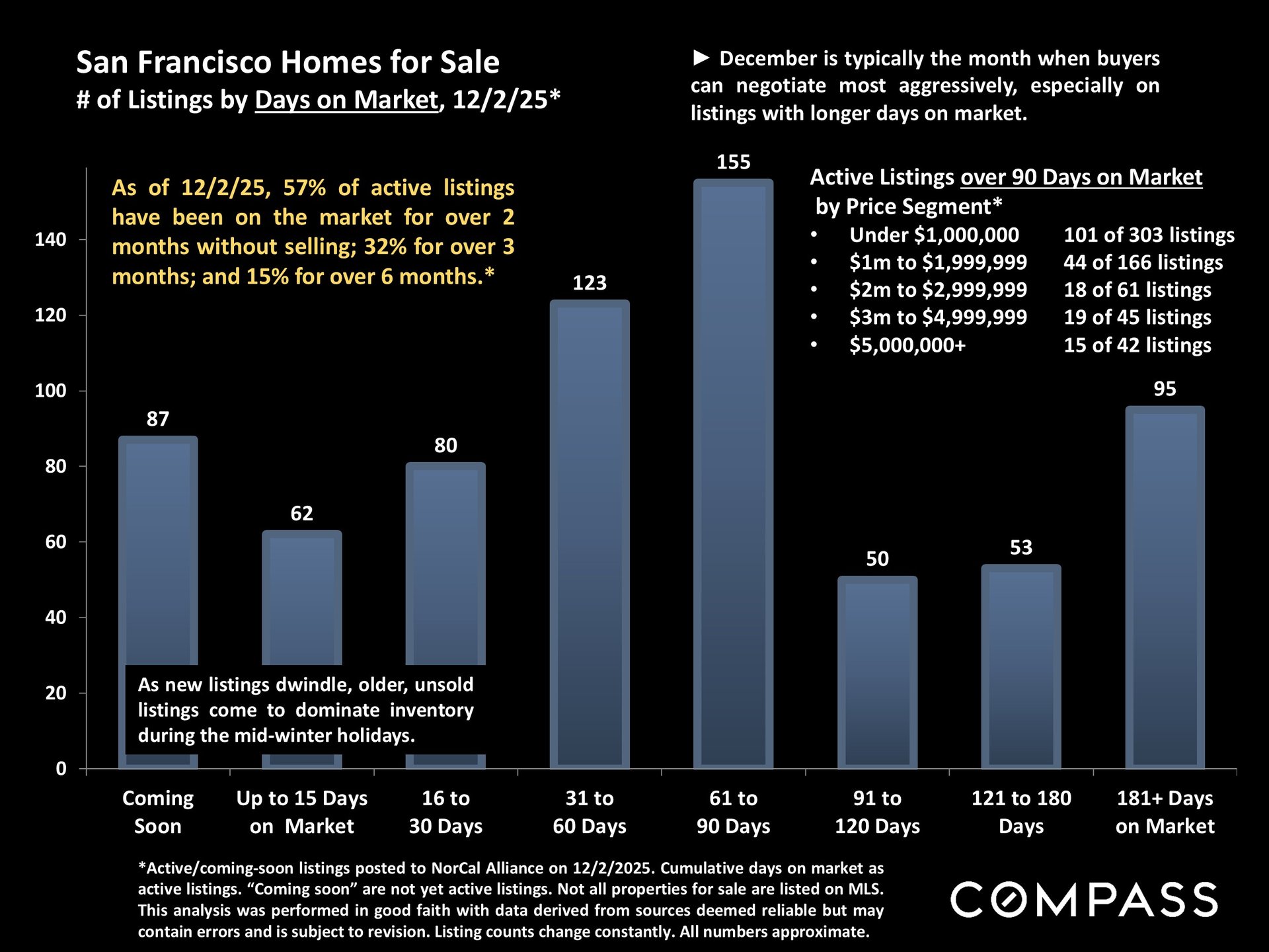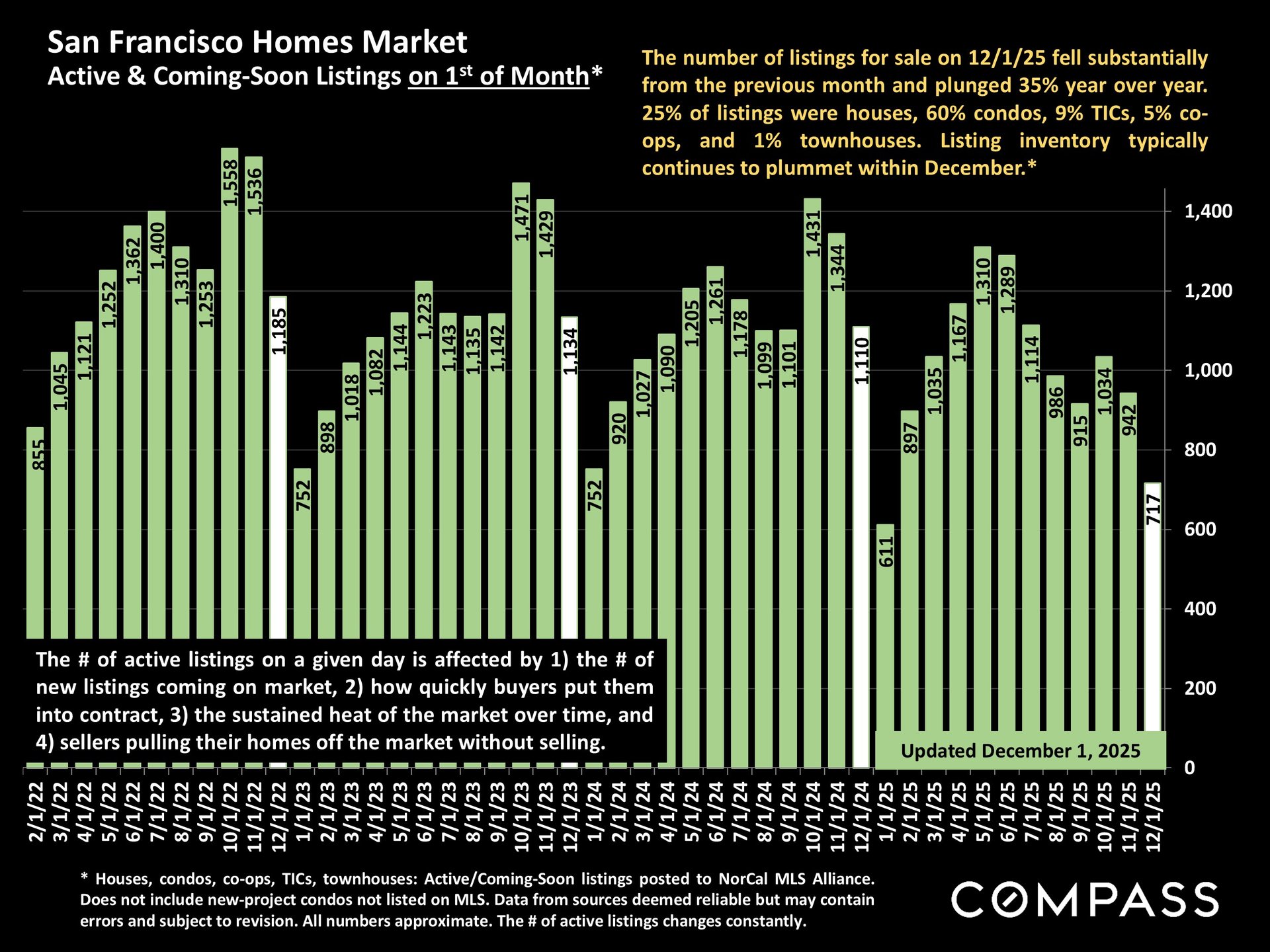As we move through December, the San Francisco real estate market is following its usual holiday-season rhythm, with fewer new listings and a slowdown in sales. This quieter stretch typically continues through the beginning of the new year until the market starts to reawaken in mid-January.